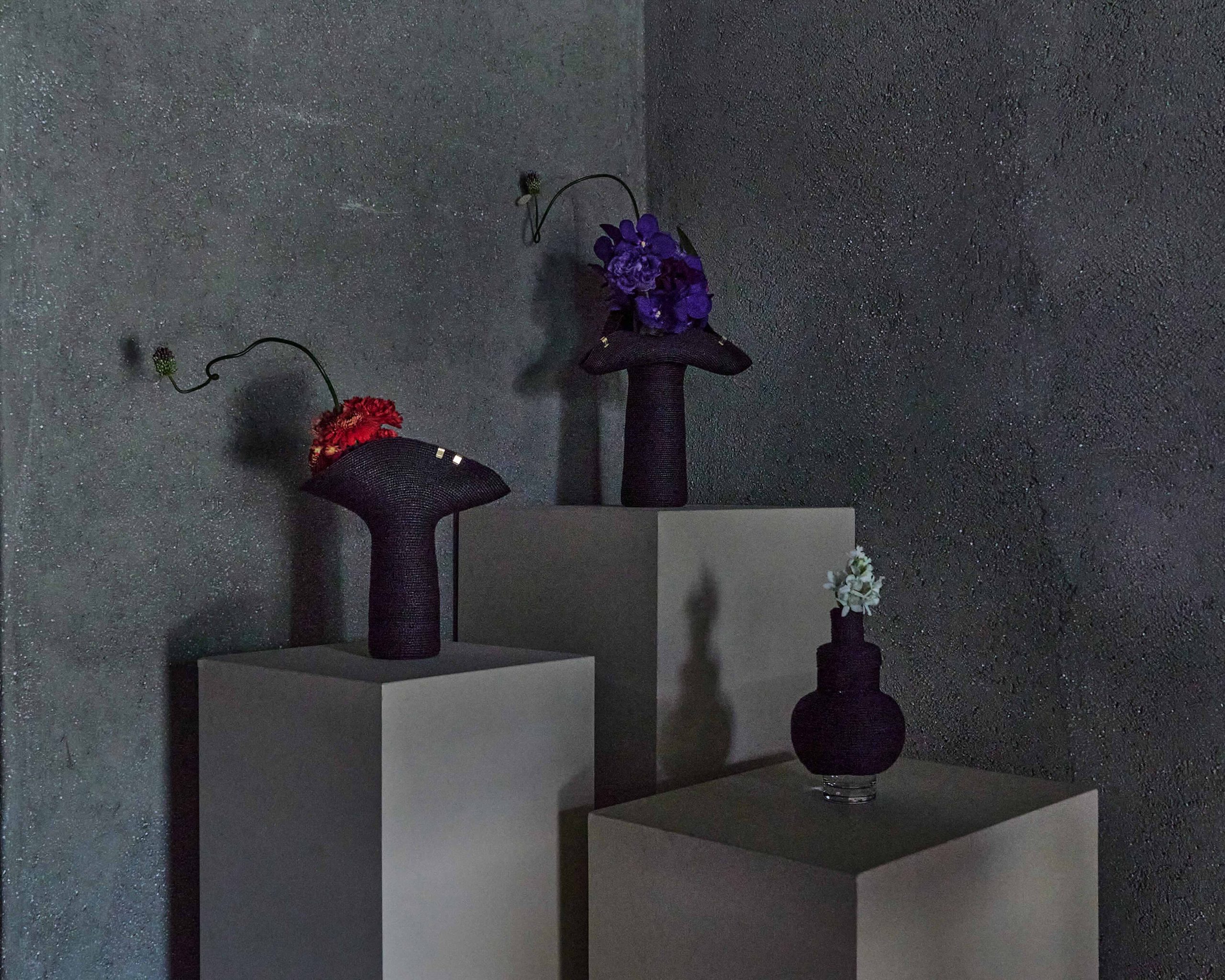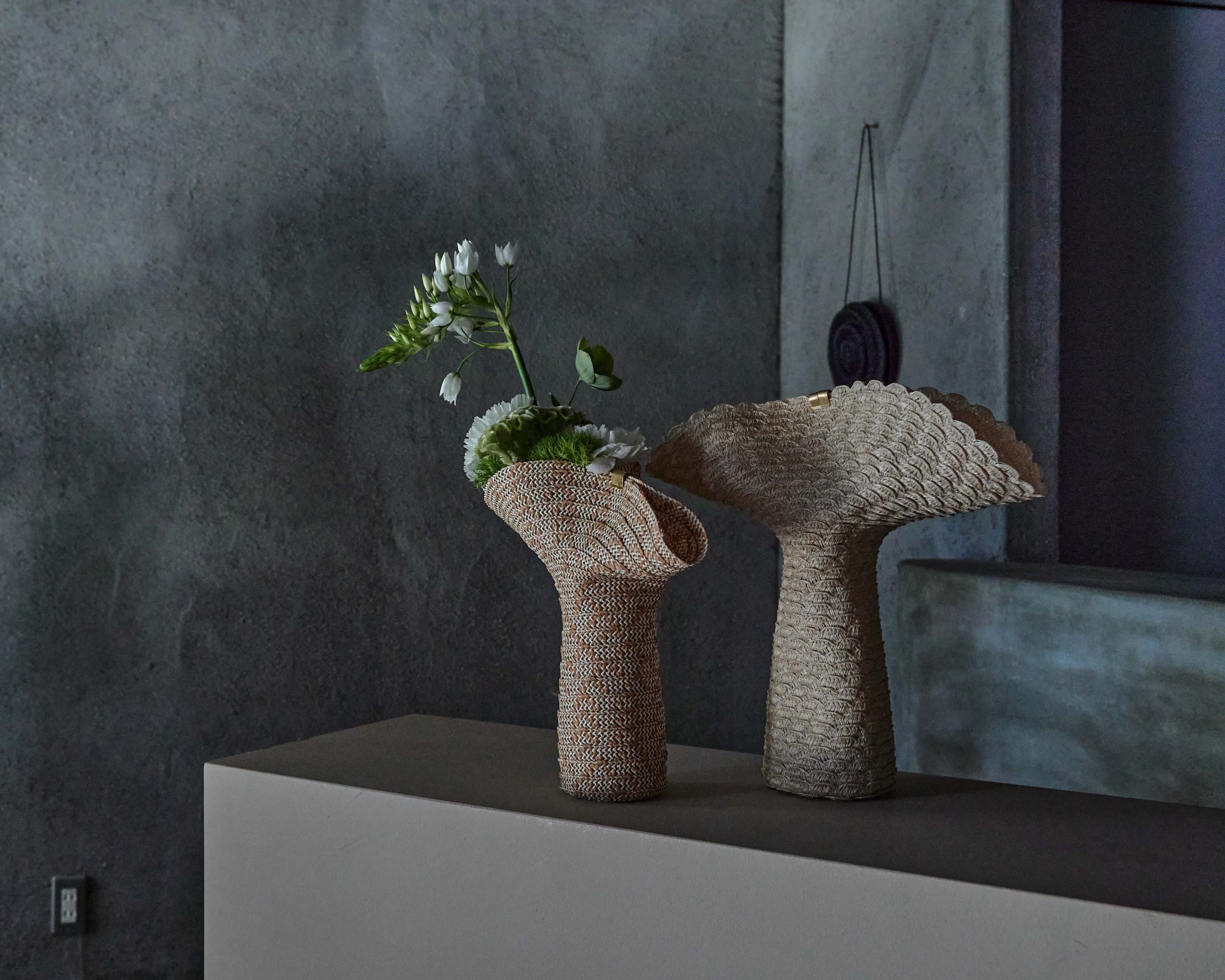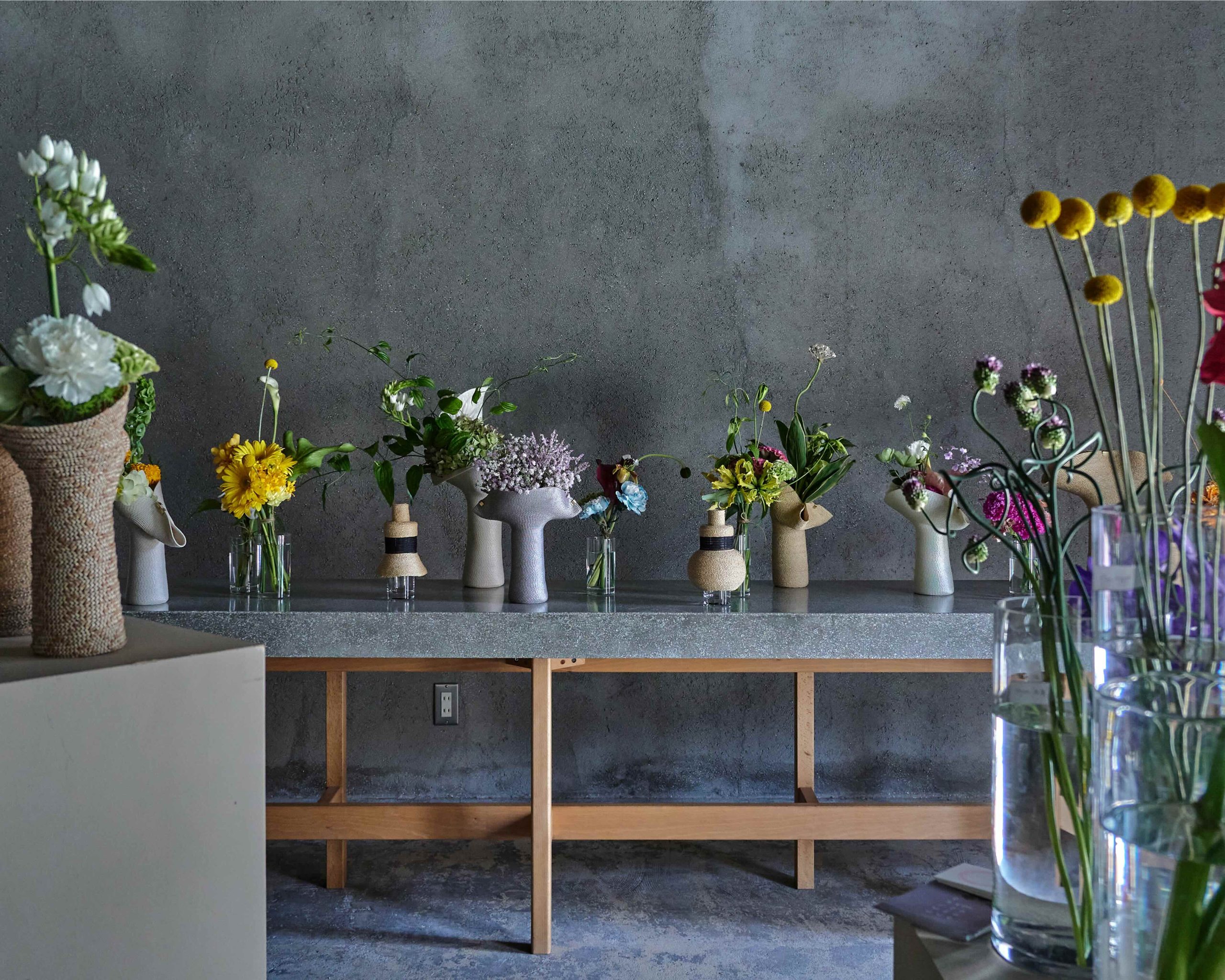 花器はMOBJEの新作 ラフィア素材のLapelを中心に展開いたします。